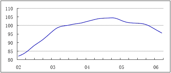 從煉油行業(yè)的景氣走勢來看,2005 年以來,由于國際原油價格持續(xù)高位震蕩,國內(nèi)成品油價格受政府嚴(yán)格調(diào)控,幾次小幅上調(diào)后仍遠低于國際平均水平,造成我國原油價格與成品油價格倒掛。在上游石油開采業(yè)利潤大幅增長的同時,原油價格上漲壓力基本落到石油加工企業(yè)身上,煉油企業(yè)自2005 年2 月份以來,虧損日益嚴(yán)重,行業(yè)景氣明顯下調(diào)。2005 年6、7 月份國家兩次上調(diào)成品油價格后,6-8 月份石油加工業(yè)虧損狀況有所減輕,但景氣下降勢頭未改。