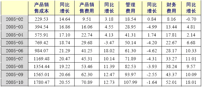2005年以來水泥制造業(yè)累計產(chǎn)品銷售成本及費用情況