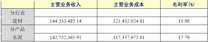 2006年1-9月巢東水泥主營行業(yè)或產品情況