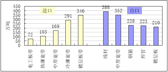 2006年1-9月進(jìn)出口量最大的五種鋼材