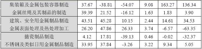 由于各子行業利潤增長情況普遍下滑,整個金屬制品制造業虧損增加。截止2006年四季度末,金屬制品業虧損企業虧損額為34.42億元,同比增長24.52%,增幅比上年同期上升19.57個百分點。其中,虧損企業虧損額增幅較大的子行業有集裝箱及金屬包裝容器制造、金屬工具制造、建筑、安全用金屬制品制造等三個行業。