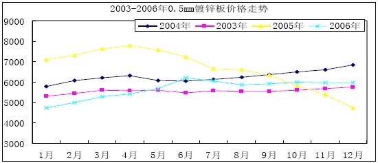 2003-2006年0.5mm鍍鋅版價格走勢