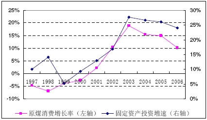 近十年原煤消費增速與全社會固定資產投資增速關系圖