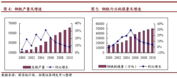 預(yù)計(jì)06 年全年生鐵產(chǎn)量為40000 萬(wàn)噸,同比增長(zhǎng)21.06%。消耗煤炭38298 萬(wàn)噸,同比增長(zhǎng)16.41%。