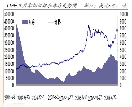 2007年3月份我國進口精銅達202,955噸,環比增長了36.5%,同比增長則高達148.5%;1~3月份的累計進口量為483,385噸,同比增長134.8%。07年1~3月份,中國銅進口強勁增長是支撐2007年銅價回升的最大驅動力。