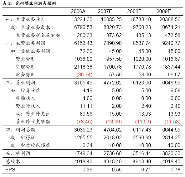 2007 年一季度公司銷售煤炭?jī)r(jià)格有顯著上漲。公司本部煤炭銷售均價(jià)為410.89/噸,同比價(jià)格上漲4.3%,比2006 年公司本部炭銷售平均價(jià)格為376.40 元/噸也大幅上漲9.16%。我們認(rèn)為,由于山西征收煤炭一金兩稅造成山西煤炭企業(yè)成本上
