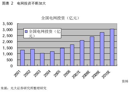 未來幾年電網投資不斷加大,主干網建設規模大幅增加。其中特高壓電網的建