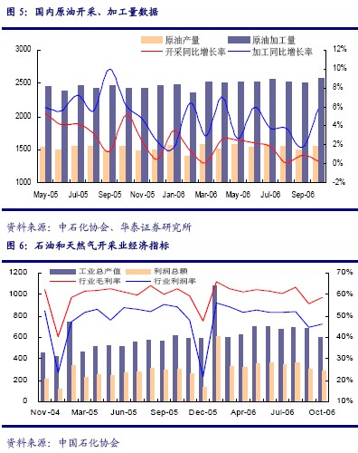 2006 年1-10 月,我國累計生產原油15337 萬噸,原油加工量為25052