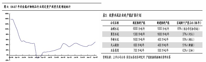 [建材]2007年1-4月水泥行業固定資產投資回升