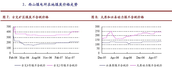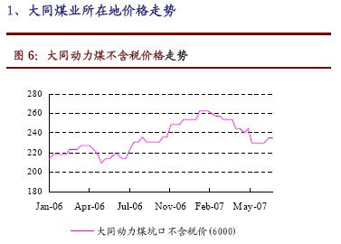07上半年十大煤炭上市公司所在地煤價走勢(1):大同煤業 西山煤電