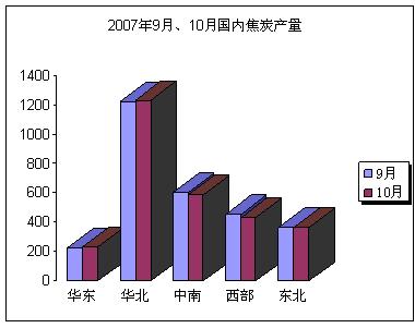在產量的分布上,山西省依然是產焦大省,也是華北地區產焦的主力軍,其他地區9、10月份的產量變化幅度也不大,甚至有些地區如西部和東北部產量還有所下降。
