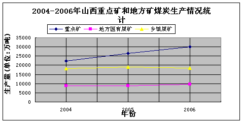 2004-2006年山西省重點煤礦與地方煤礦生產總量情況對比分析: