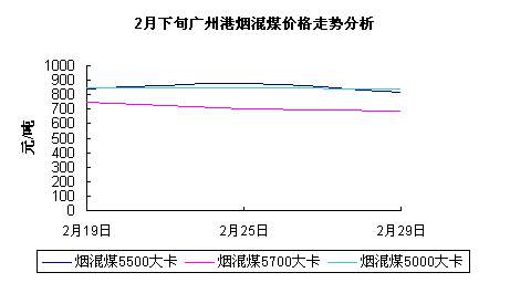 由于2月廣州電力緊缺,廣州港以電煤運輸為主,煙混煤價格變化不大,當地煤炭資源較為緊張。