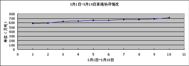 3月1日-3月10日這段時間內,秦港場存在上月下旬上升之后,本月上旬繼續保持上升態勢,上升到了710萬噸以上.秦港場存的上升, 使一些煤種出現了滯港現象,同樣使本地煤炭市場的價格梢有回落.