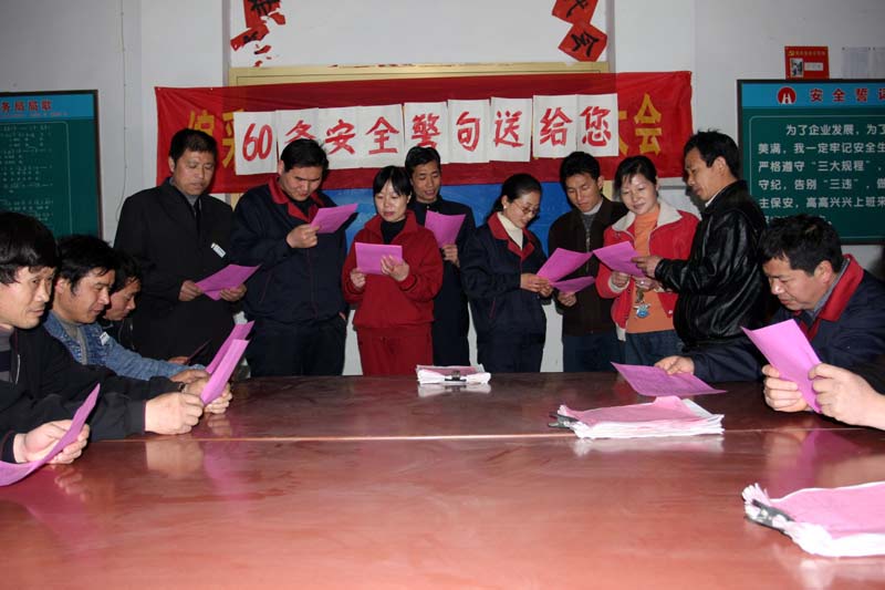 3月21日上午,淮北臨渙煤電水電科協安會的協安員,來到安全結對子的綜采一區,開展“60條安全安全警句送給您”活動。她們結合煤礦安全生產實際,精心擬定了“有妻有子有家庭,沒有安全等于零、一人把關一處安,眾人把關處處安、遵章守法保平安,違法蠻干存隱患”等60條朗朗上口,通俗易懂的安全警句送給前往開安全例會的職工。希望工友們?纯,常想想,在井下切實搞好安全,讓警句時時警醒自已,讓安全常相伴。