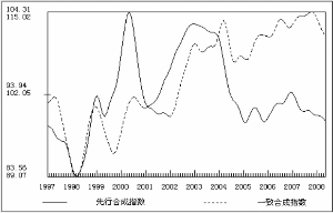 圖1 1997年以來先行與一致合成指數趨勢變動圖