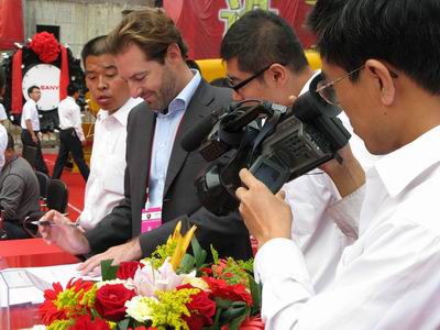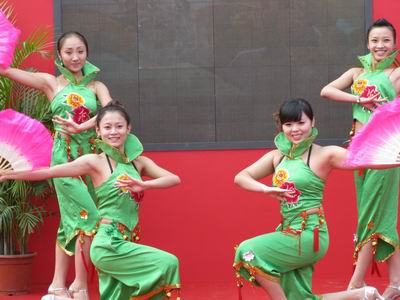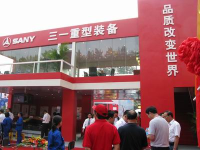 三一重型裝備有限公司雖然沒有占據(jù)最大的展臺,也沒有擁有最好的展位,但無疑卻是展會現(xiàn)場的一個亮點。首先,鮮亮的紅色布景就吸引大部分觀眾的眼球;其次是展臺前面一排昂首向天的掘進(jìn)機(jī)氣勢磅礴;再次,公司邀請了一支專業(yè)的舞蹈隊表演,現(xiàn)場氣氛熱烈;最后是一支董事長親自帶隊的近百人龐大服務(wù)團(tuán)隊,表現(xiàn)十分活躍。