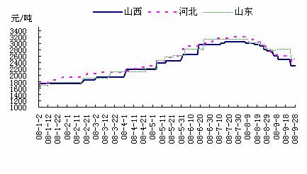 9月份焦炭市場價格由8月份部分地區小幅跳水進入了全國范圍內的大幅跳水局面。由于鋼材市場的持續疲軟,鋼企減產、限產局面難以改變,對焦炭的消耗減少,加上部分鋼鐵企業有自己的焦化廠,因此鋼企對焦炭的采購明顯減少,市場成交清淡,焦炭市場進入全面大幅下跌的局面。