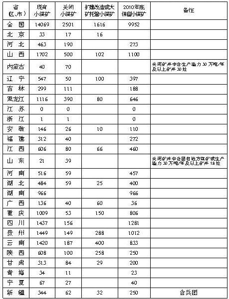 一、各地要在省級(jí)人民政府統(tǒng)一領(lǐng)導(dǎo)下,按照“提高門檻、嚴(yán)格準(zhǔn)入,打擊非法、淘汰落后,資源整合、提高檔次,大礦托管、提升水平,明確責(zé)任、加強(qiáng)監(jiān)管”的總體要求,將本地區(qū)現(xiàn)有小煤礦通過淘汰落后關(guān)閉一批,擴(kuò)能改造提高一批,大礦托管(包括兼并、收購、租賃)提升一批,到2010年底確保完成保留小煤礦數(shù)量目標(biāo)。