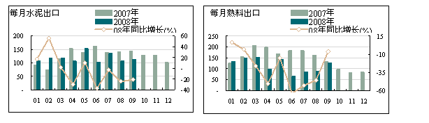 我國的水泥生產絕大部分在國內消費,9月份的水泥的出口量僅為113.03萬噸,環比增長5.89%,同比增長率較8月份提升近4個百分點,為-20.97%;離岸價為46.85美元/噸,同比增長19.42%。
