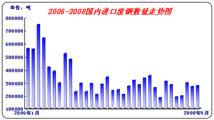 據(jù)統(tǒng)計,9月份我國進口廢鋼27.8萬噸,環(huán)比8月份27萬噸增加0.8萬噸,增加0.03%,雖然9月份我國進口近28萬噸,但實際簽單量已經(jīng)超過50萬噸,10月份進口廢鋼有可能繼續(xù)增加,理由除了這50萬噸后續(xù)到貨外,還有更重要的因素就是價格,這次經(jīng)濟危機中國處境相對好些,日本、美國本地廢鋼價格大幅度下滑,出口價格也在降,10月20日,美國一批優(yōu)質(zhì)重廢CIF到張家港港口價格1800元/噸,屆時當?shù)劁搹S廢鋼市場收購報價2100元/噸。