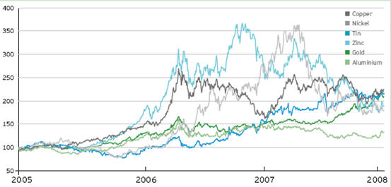 盡管受到限制,2003年到2007年間,全球性的生產(chǎn)仍然有所增長。據(jù)澳大利亞農(nóng)業(yè)與資源經(jīng)濟(jì)局(ABARE)統(tǒng)計,鋁產(chǎn)量增長35%,煤炭增長32%,基本金屬增長8%,金減少2%。