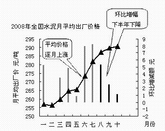 10月份全國水泥平均出廠價格每噸290.85元,比上月上漲1.16元,比去年同月高47.61元。今年以來,全國水泥價格上升幅度較大,全年平均比去年同期上升34元,但下半年全國水泥出廠價格上升步伐明顯放慢,6月份和7月份全國水泥平均出廠價格分別比上月上漲7.96元、8.27元,8-10月份環比上漲5.28元、2.54元、1.16元。10月份東北、西北和華北的大部分省區以及廣西的水泥價格仍有較大幅度的攀升,推動全國水泥平均出廠價格繼續小幅上揚,而華東、中南的大部分省市以及北京、天津的水泥出廠價格則比上月下降。