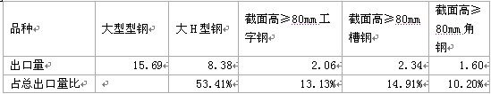 由表一可以看出,10月份大規格H型鋼出口量依然占較大的比重,占大型型鋼出口量的一半以上,工角槽出口量占總出口量的比例相差不大。