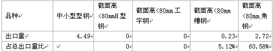 表二:10月份中小型型鋼分品種出口明細 (單位:萬噸)