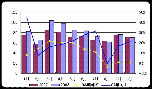 宏觀經(jīng)濟(jì)下行壓力仍在加大:從今年下半年跌勢可以看出,宏觀經(jīng)濟(jì)下滑所導(dǎo)致的有效需求減少及市場信心嚴(yán)重受挫是導(dǎo)致與宏觀經(jīng)濟(jì)高度正相關(guān)鋼材價(jià)格快速回落的最為關(guān)鍵因素之一。由此可見,宏觀經(jīng)濟(jì)走向?qū)τ阡摬氖袌霭l(fā)展至關(guān)重要。眾所周知,我國宏觀經(jīng)濟(jì)不僅受到國際金融危機(jī)向?qū)嶓w經(jīng)濟(jì)蔓延的沖擊,同時(shí)還面臨結(jié)構(gòu)調(diào)整轉(zhuǎn)型等問題,10月數(shù)據(jù)顯示經(jīng)濟(jì)下行壓力仍在加大。盡管國家已經(jīng)出臺一系列提振經(jīng)濟(jì)措施,但從實(shí)施到見效需要時(shí)間,況且此次全球性金融危機(jī)遠(yuǎn)未結(jié)束,不確定性因素依然存在,因此,我國經(jīng)濟(jì)處于下降周期的趨勢在未來一段時(shí)間內(nèi)難以扭轉(zhuǎn)。