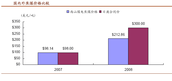 2007、2008年國內外焦煤價格比較