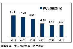1~11月的全國的水泥產品積壓率延續近幾年連續下降趨勢,為4.53%,是自03年以來的最好水平。今年在市場需求減緩的情況下,很多地區主動采取限產保價措施,是產品積壓率持續走低的最主要原因。