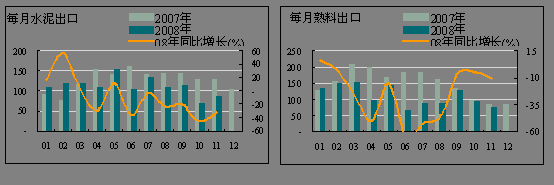 水泥與熟料出口與上年相比仍差距較大,但水泥與上月相比略有回暖,熟料較上月繼續回落。