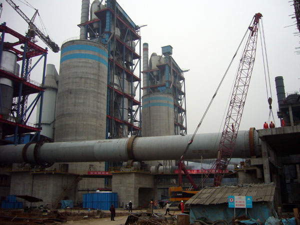 繼2008年12月5日四川峨勝水泥股份有限公司二期5000t/d新型水泥干法生產線順利點火投產后,蘇州中材第37項目部所有人員未曾休息一天就投入了緊張的三期5000t/d水泥生產線的施工建設。項目部精心組織,僅用短短37天,三期回轉窯就順利完成了合龍 。同時,該線窯尾預熱器及鋼結構框架已經安裝到第三層,工期之短,進度之快,得到了業主對蘇州中材的充分肯定和高度贊揚。