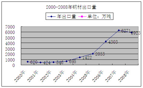 一、鋼材出口結束連續六年增長,08年鋼材出口同比下降5.5%