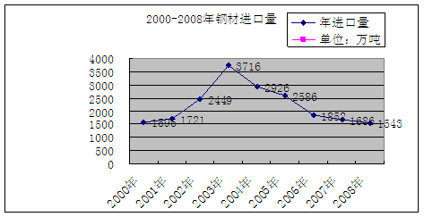 圖4:2000-2008年鋼材進口量