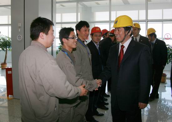 在這座國內率先建設投產百萬千瓦級超超臨界火電機組的電廠,趙希正、曹培璽等饒有興致地觀看了現代化的廠容廠貌,來到4臺百萬千瓦機組一體監控的主控室,與值班員工一一握手,親切交談,仔細閱看了當日機組運行曲線,詢問了機組安全生產情況,并對一線員工表示親切的慰問和衷心的感謝。在電廠10萬噸級輸煤碼頭察看了煤碼頭建設和運營情況。在國內最大的海水淡化裝置面前,細致了解了整個淡化流程并品嘗了化學處理后的淡水。