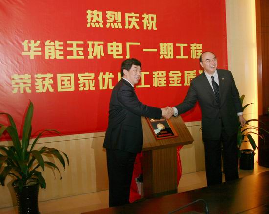 1月17日,中國電力企業聯合會理事長趙希正、中國華能集團公司總經理、黨組副書記曹培璽一行赴華能玉環電廠慰問,為玉環一期工程榮獲2008年國家優質工程金質獎揭牌。