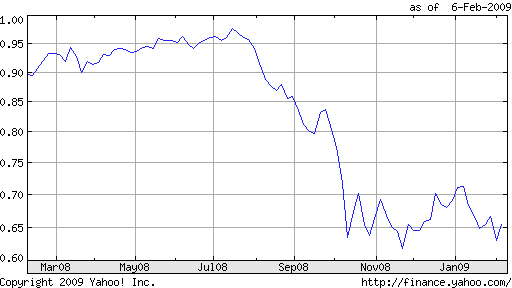 巴西礦山公司也存在同樣的問題,2008年的大部分時間里,巴西貨幣Real對美金的匯率保持在0.6以上,而經歷了2008年9月至10月的大幅下滑后,一直保持在0.4左右,這一期間的跌幅為33%,與澳元跌幅基本相同。