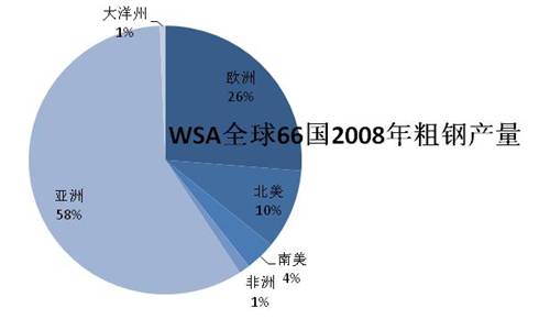 根據(jù)WSA公布的統(tǒng)計數(shù)字,亞洲地區(qū)無疑是全球最重要的粗鋼產(chǎn)地,它的產(chǎn)量幾乎占全球產(chǎn)量的6成。其次是歐洲占四分之一強,中北美占10%,三大地區(qū)粗鋼產(chǎn)量占全球產(chǎn)量的94%。2008年全球66個國家累計生產(chǎn)粗鋼13.3億噸,同比減少1.1%。其中,歐洲粗鋼產(chǎn)量同比降低了5.8%,北美及中美地區(qū)產(chǎn)量同比降低了5.6%,亞洲地區(qū)降低了0.7。非洲大幅降低了9.4%,大洋洲下降了3.7%,南美下降了1.4%。