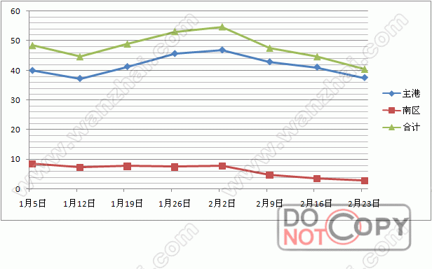 截止至2009年2月25日,萬寨港庫存41.7萬噸,其中主港區(qū)37.8萬噸,南區(qū)3.9萬噸。