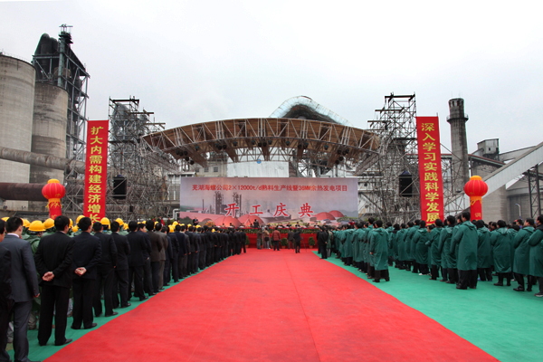 2009年2月27日,由安徽海螺集團公司投資興建的蕪湖海螺公司三期兩條日產12000噸熟料生產線及配套的36兆瓦余熱發電項目正式破土動工。該項目建成投產后,蕪湖海螺公司熟料總產能將突破1500萬噸,余熱發電能力將增加到6億度,成為當今世界最大的水泥熟料生產基地。同時,對加速安徽省水泥工業結構調整、推進節能減排、增加社會就業、繁榮地方經濟,將會發揮重要作用。