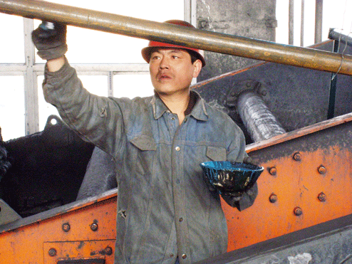 3月1日上午,陽煤集團五礦選煤廠洗煤隊員工正在對跳汰機更換后的噴水管路正在油刷。
