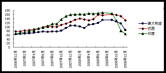 印巴澳三國鐵礦石平均價格統計(數據來源 中國海關):
