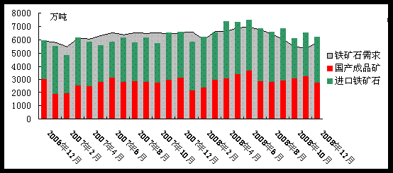 春節后第一個月,國內鐵礦石市場出現再一輪的跌勢,中國鋼鐵企業在08年四季度遭受的傷痛還沒有平復,又一波打擊已經襲來。春節后第一周鋼價和礦價的強硬拉動,很快被真實的下游需求情況所拉垮。鋼鐵企業重新回到生存線附近,甚至已有些小型企業再一次關停了高爐,開始停產檢修。鋼企的成品庫存開始升高,相應的原料采購的積極性也逐漸減弱,鐵礦石外盤價格和現貨市場都出現了持續下跌,鋼廠對后期鋼市持悲觀心態,鐵礦石市場價格在3月份很難有明顯的起色。 一、09年1月-09年2月鐵礦石供求態勢 2009年1月中國進口鐵礦石3265萬噸,比08年12月的3452萬噸下降5.4%,但考慮到08年12月有22個工作日,而09年1月只有17個,因此08年12月為156萬噸/工作日,09年1月的日均進口量為183萬噸/工作日,比08年12月增加了27萬噸/日,增幅17.3%,這也是2008年5月以后8個月以來日均進口的最高。 2月鋼材市場開始調頭向下,各品種價格全面回落,一些分析認為,鋼材市場政策刺激下的周期性反彈,可能已趨于尾聲,未來鋼材市場又將步入新一輪低迷調整時期。眾多鋼鐵企業重新恢復生產,并補充庫存的腳步因此減緩,未來中國進口鐵礦石需求可能重新調頭向下,呈現周期性回落趨勢。 歐洲銀行預測,2009年全球經濟增長率不超過1%,明顯低于2008年2.5%的增長速度,更大大低于過去4年中3.5%至4%之間的增速。雖然中國取消了鋼材出口關稅,但2009年中國出口仍可能大幅下降,預計全年出口將下降到4000萬噸左右,這將比2008年下降34%之多,大量出口鋼材回流對未來中國國內鋼材市場將是非常嚴峻的挑戰,對未來鐵礦石市場的負面影響不可小視。