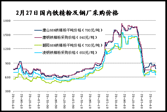 2月末華東地區鋼廠國內鐵精粉采購價格表