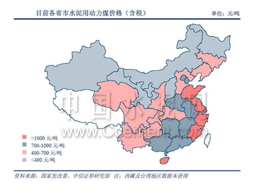 但由于地區(qū)不同,煤電成本的價(jià)格區(qū)域性差異也更加明顯。購進(jìn)價(jià)格對比顯示:煤炭采購成本更具優(yōu)勢的地區(qū)主要集中于中西部,尤其是西北和華北地區(qū),而相對不利的區(qū)域是華東沿海省份。區(qū)域水泥用電力購進(jìn)價(jià)格對比顯示:其結(jié)論與煤炭對比分析部分基本相似,即中西部處于更為有利位置。煤電價(jià)格高的地區(qū)水泥綜合生產(chǎn)成本往往較高,煤電成本占比也較大,在煤電價(jià)格同樣漲幅的情況下所面臨的成本上升壓力更大。