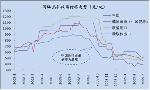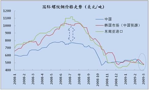 為何我國鋼鐵進出口市場會發生如此顯著的逆轉?根本因素在于受經濟危機影響,國內外鋼材價格發生逆轉。