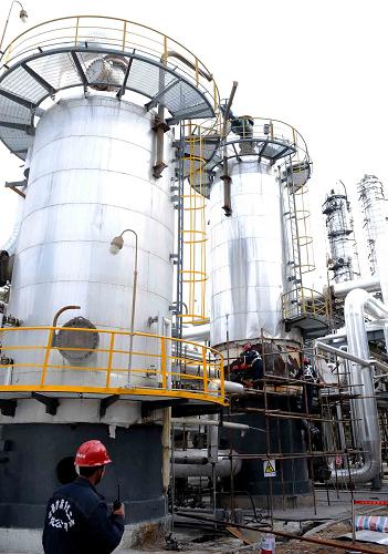 3月16日,技術人員在內蒙古伊泰集團煤制油公司合成裝置區安裝設備