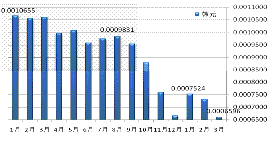 (1)韓元。進(jìn)入2008年以后,韓元對美元開始大幅貶值,至2009年3月,1韓元兌美元由2008年1月的0.0010655,跌至今年3月份的0.0006596,韓元累計(jì)貶值了38.09%。不僅是韓國,越南等東南亞國家貨幣也大幅貶值,抬高了中國鋼材向這些地區(qū)出口的成本。